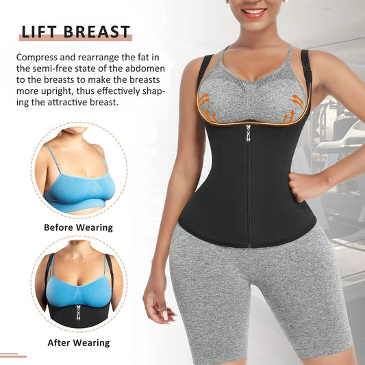 Waist Trainer Tank Top For Women Zipper Body Shaper Tummy Control Sleeveless Top, Women's Activewear Body Shaping Underwear